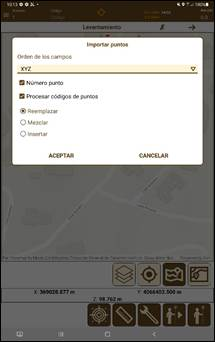 La opción por defecto es Reemplazar, que borrará todos los puntos del dibujo y los sustituirá por los puntos importados.