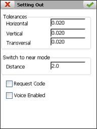 Request Code: If this option is activated, a code will be requested every time a point is recorded in the setting out options.