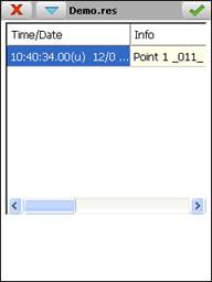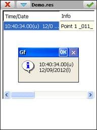 ·Info: Data on the point set out depending on the setting out option selected. For instance: Station 1450.000 Movement. -5.345 for the Station and Movement, Point 155 for the Point setting out option.
