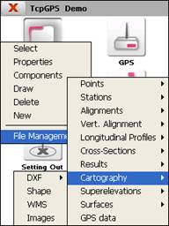 In the different data acquisition and setting out options, the programme allows the use of cartography files with different formats as well as working in real time with the WMS services (Web Map Service) if there is an Internet connection.