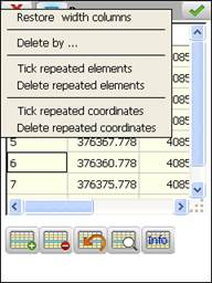 The other options allow the default width of the columns to be restored and to localise and eliminate points which have the same number or coordinates.