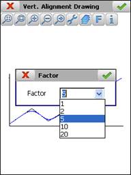 Shows a drawing of the current vertical alignment. Should transition curves be defined, both the previous vertical alignment as well as the definitive vertical alignment will be drawn.