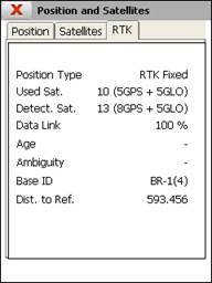 Position Type: Current position type calculated by the receiver (Autonomous, RTK Float, RTK Fixed or DGPS).