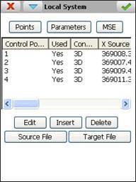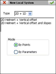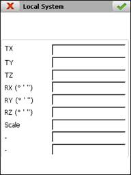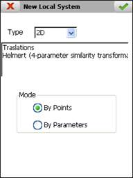 Once the parameters have been calculated or entered manually, the accept button must be pressed to create the local system. It is an ASCII file with the extension NTR and with the following format (example of 2D-Helmert transformation):