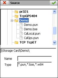 The files must be of the point (*.PUN) or base (*.BSE) type. For origin data geographic coordinates' files are also permitted with an extension *.W84 created under the option File Management > GPS Data.