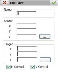 If a point is entered manually the Name, Coordinates Origin and Destination must be indicated and whether it will be used for planimetry, Control H, altimetry, Control V or in both cases. It is also possible to edit the values of these parameters for any point, whatever the insertion method.