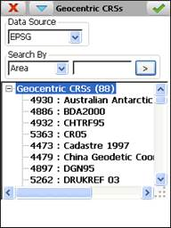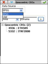 The drop down list of the section Data Source allows EPSG data consultation to be switched to user data and vice versa.