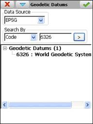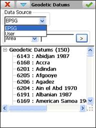The drop down list of the section Data Source allows EPSG data consultation to be switched to user data and vice versa.