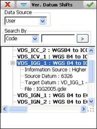 By double clicking a datum shift on the list its properties are displayed, Information Source, Source Datum , Target Datum and File.
