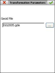 Transformation Parameters: This allows the selection of the geoid model file on which the datum transformation is based. This file is binary and has the extension *.GDE.