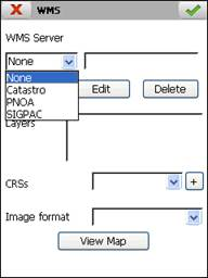 To deactivate this type of cartography in the different data acquisition options, None must be selected from the WMS Server list.