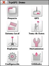 TcpGPS es una aplicación basada en diálogos que se presenta con un menú principal compuesto por una serie iconos que permiten acceder a las distintas opciones del programa a través de menús de contexto.