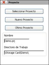 Para iniciar la aplicación es necesario crear un trabajo nuevo o seleccionar uno existente, para ello, después de la pantalla de inicio, se muestra la siguiente ventana de proyecto: