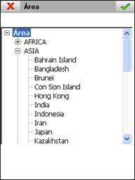 Área: Permite filtrar la búsqueda de los parámetros del sistema de coordenadas dejando sólo los elementos de la zona seleccionada. Si no se desea usar este filtro, se debe desmarcar la casilla. Pulsando el botón , se muestra la siguiente lista de continentes y paises: