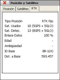 Tipo posición: Tipo de posición actual calculada por el receptor (Autónomo, RTK Flotante, RTK Fijo o DGPS).