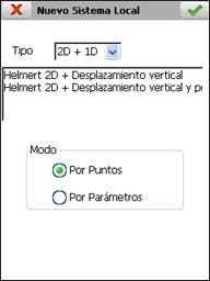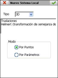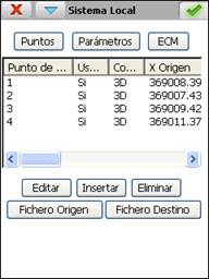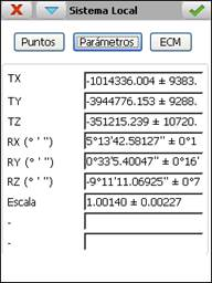 Una vez calculados o introducidos manualmente los parámetros se debe pulsar el botón aceptar para crear el sistema local. Se trata de un fichero ASCII con extensión NTR y con el siguiente formato (ejemplo de transformación Helmert 2D):