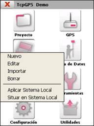 En este apartado se pueden crear sistemas de calibración que permiten transformar las coordenadas proyectadas en coordenadas de un sistema local propio.