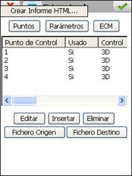 Se permite introducir los pares de puntos desde fichero, a través de los botones Fichero Origen y Fichero Destino, o de forma manual, pulsando el botón Insertar.