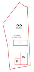 In the image on the left we see three closed polylines, which, some in Roman numerals and one in decimal, indicate the number of plants of the same.