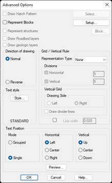 Text Style: Select the text style to be associated with the texts labelling the cross-section drawing. By clicking on Styles any of the styles previously configured in CAD may be selected.
