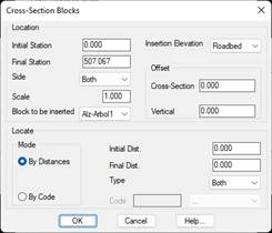 If the Setup button is clicked, the following window is displayed where the insertion point of each of the blocks one wishes to insert along the different cross-section cuts is specified.