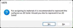 This command allows one to consult or modify the information about a surface’s triangle types. Firstly, a message appears enabling us to select the type of surface representation, 2D solids or polylines; we recommend working with 2D solids in order to take full advantage of the different colors of the materials.