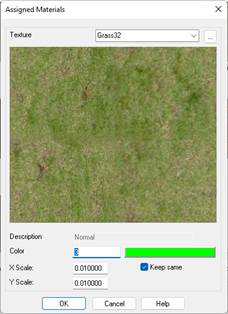This command serves to manually assign a material to certain triangles on the current surface, with the aim of improving its presentation in the Terrain Route and Road Route commands. The Viewer is launched on closing the window.