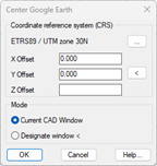 To the Accept, Google Earth will open and move to the selected area, which will be framed with a polyline referenced as CAD Window in the list of places. By unchecking the corresponding box, the polyline can be hidden.