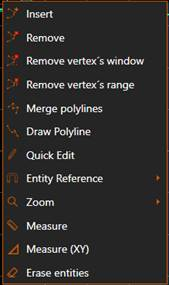 The edition operations will only appear when we right click over an entity. These edition operations are the same than the ones on the Edition Menu from the toolbar, if we use them from this menu, we can avoid selecting the entity when the command runs, because the target entity is already known.