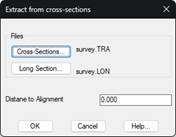 When you run this option, the following window will appear in which you will specify the cross-sections file, the long section file to be created and the distance to the axis.