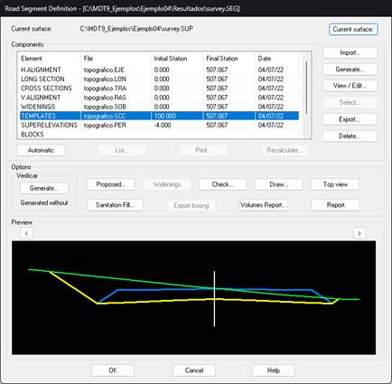 Templates (extension .SCC): contains the section definition and assignment across the horizontal alignment. These are necessary to calculate and draw the cross-section profiles.