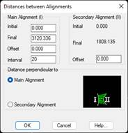 Secondary Alignment: If this option is selected the distances will be perpendicular to the second horizontal alignment selected.