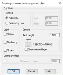 Layers: One selects the layer on which the cross-sections will be drawn on the ground plan. The program proposes the TRANS layer by default.