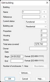 When selecting the building, the following dialogue box will appear, the attributes of which you will describe.