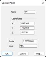 Once any of these fields has been modified, the changes are updated when the dialog box is validated, and the control point is redrawn. If the control point’s name is changed to that of another already existing control point, the program will prevent the operation from being confirmed, showing the message “ERROR: Existing control point”.