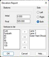 Vertices to list: It is necessary to send the left list of vertices for which we wish to calculate the elevation to the right list of vertices. In the right list only the vertices existing in the roadway or segment selected will appear.