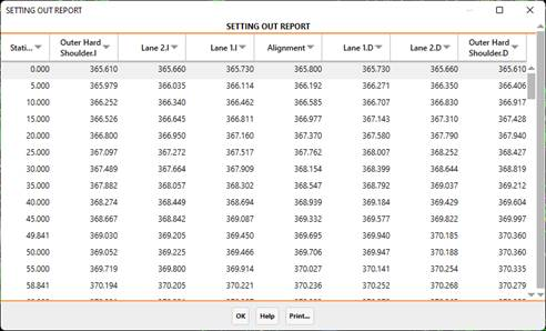 Once this dialog box is validated the following list will appear with all the information on the elevation requested. The list is given by stations with the analyzed vertex appearing at the top of each column.