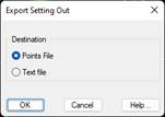 Points file: All the coordinates of all the points on the list are exported to a points file. When the dialog box is validated, the Export Points command is automatically executed. For further details, see the Points section.
