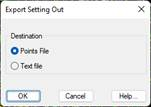 Points file: All the coordinates of all the points on the list are exported to a points file. When the dialog box is validated, the Export Points command is automatically executed. For further details, see the Points section.