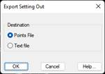Points file: All the coordinates of all the points on the list are exported to a points file. When the dialog box is validated, the Export Points command is automatically executed. For further details, see the Surveying Points section in this manual.