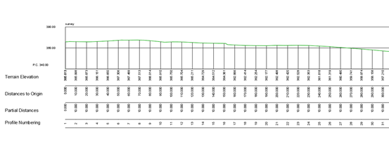 Once the dialog box has been validated, MDT requests a point on screen from which the long section will be represented. These points can be selected with either the mouse or by entering data in the command line. The final result of a longitudinal drawing can be seen below.