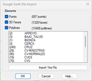 Recognized elements: This command has the possibility to import "Points", "3D Faces" and "Polylines", designated the file will show us the number of existing entities of each of them with the possibility of activating or deactivating the import.
