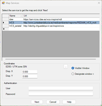 When you run the command, a window first appears with a list of the various services configured in the program. This list includes a Name to identify the service, and a Web Address where you can make the map request. Items can be added to the list by typing on the line marked *. In addition, you have to specify the projection of the drawing, and if you want to obtain an image that occupies the entire visible drawing area, or designate a smaller window.