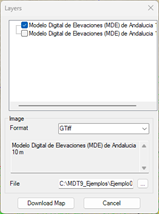 Pressing the button Download Map The request for the image begins, and finally the program will request a file where it can be saved. A second file will be automatically created with the georeferencing data of the image.