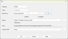 By default, the projection of the current drawing will be displayed, in case it is assigned, In any case, to select the projection you will have to press the browse button and it will show us the following dialog: