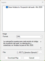 When you press the Next button , the program connects to the service selected in the list and another window appears to select the layer, as well as its format. These options depend on the service selected.