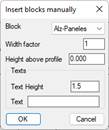 Block: Block to be inserted. The program loads this block in the blocks folder. So, if one wishes to insert one’s own block, it should have previously been copied to that folder.