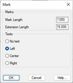 Extension Length: If texts are drawn, this value sets the mark’s extension in the direction of the text attached.