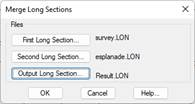 This command facilitates merging two long sections for which the program requests, via the below window, the two profiles to merge and the profiles file where the resulting profile will be saved.