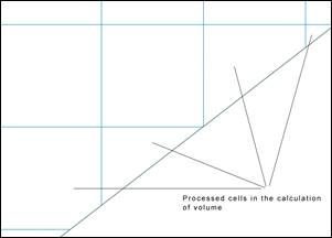 If the Create partial cells on the boundary option is activated in Settings > Volumes, in the event the cells on the calculation perimeter are only partially affected by the calculation of volume, only the affected region of the cell in question will be processed.